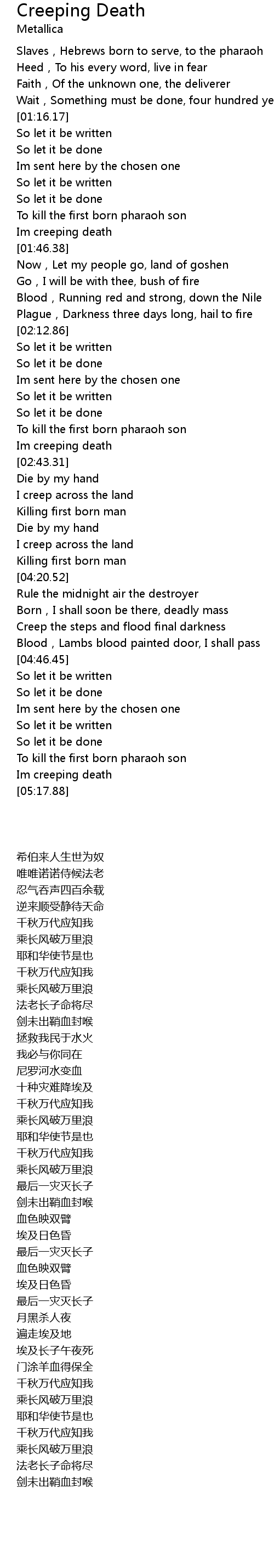 | [01:43.86] | Im creeping death |