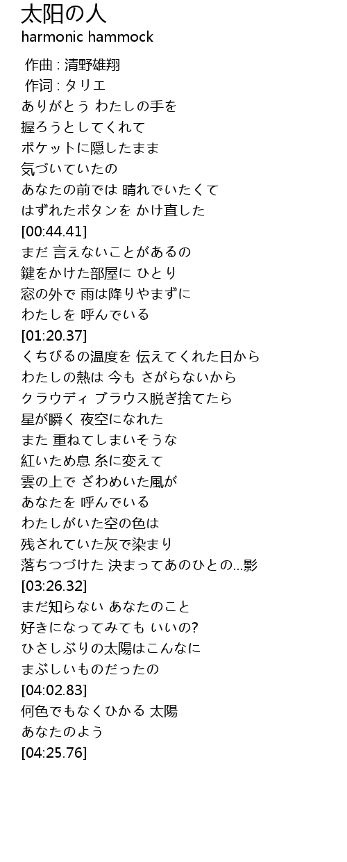 | [04:04.80] | 何色でもなくひかる 太陽 |