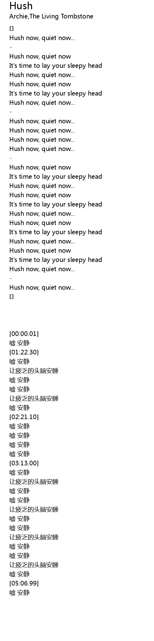 | [04:44.72] | Hush now, quiet now |