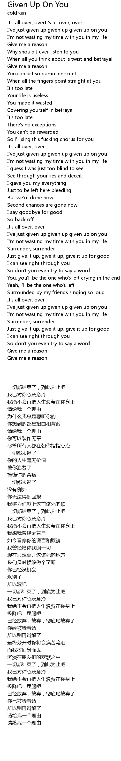 I've just given up given up given up on you |