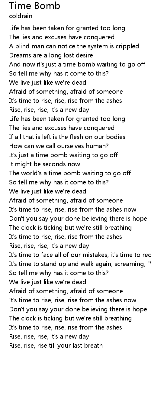 | [01:22.70] | The world's a time bomb waiting to go off |