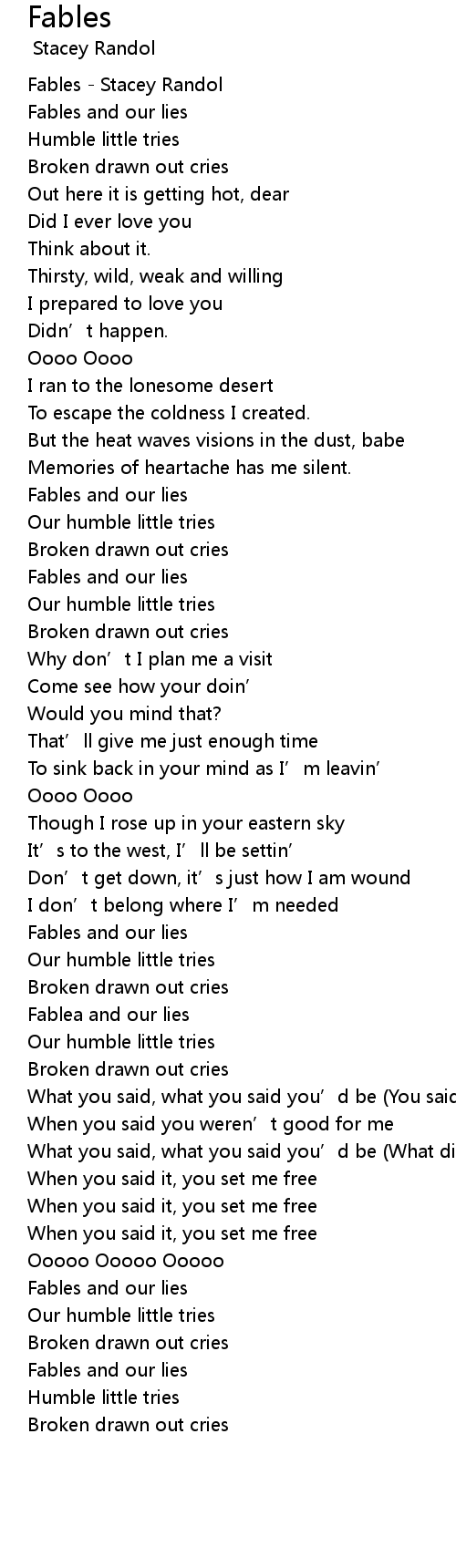 | [00:00.000] | Fables - Stacey Randol |
