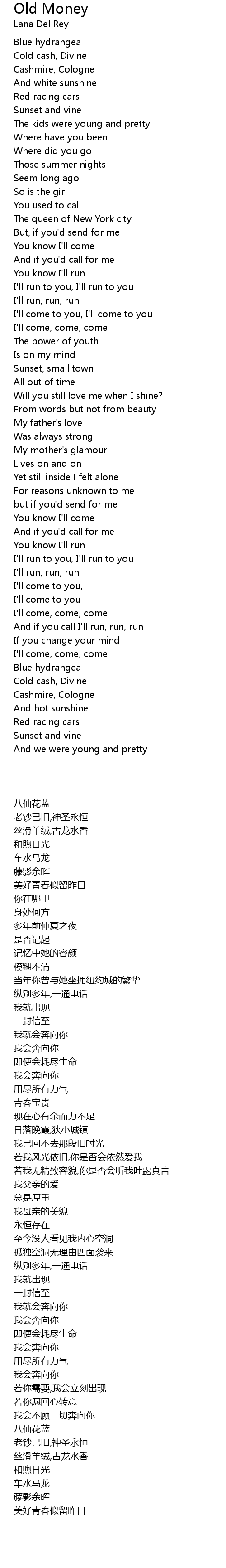 Cold cash, Divine |