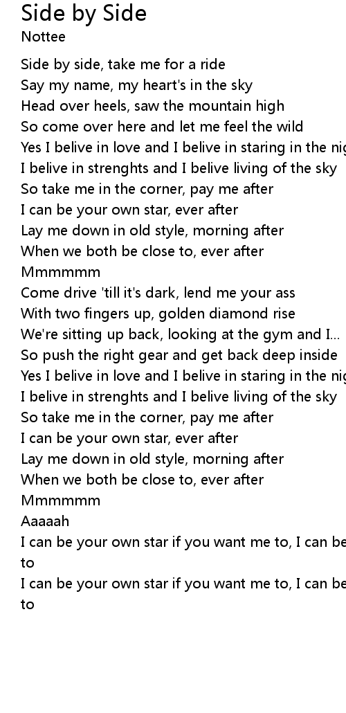 Side by side, take me for a ride |