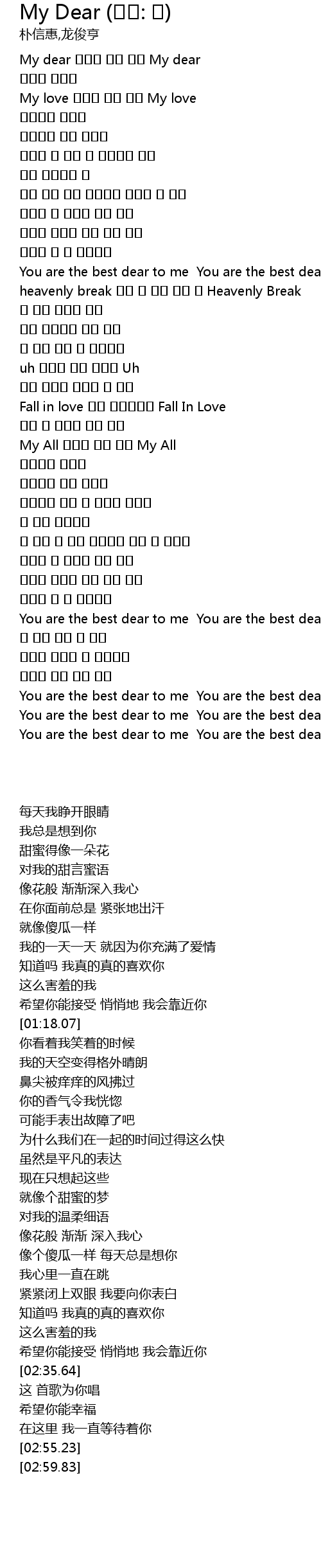 | [02:35.64] | You are the best dear to me You are the best dear to me |