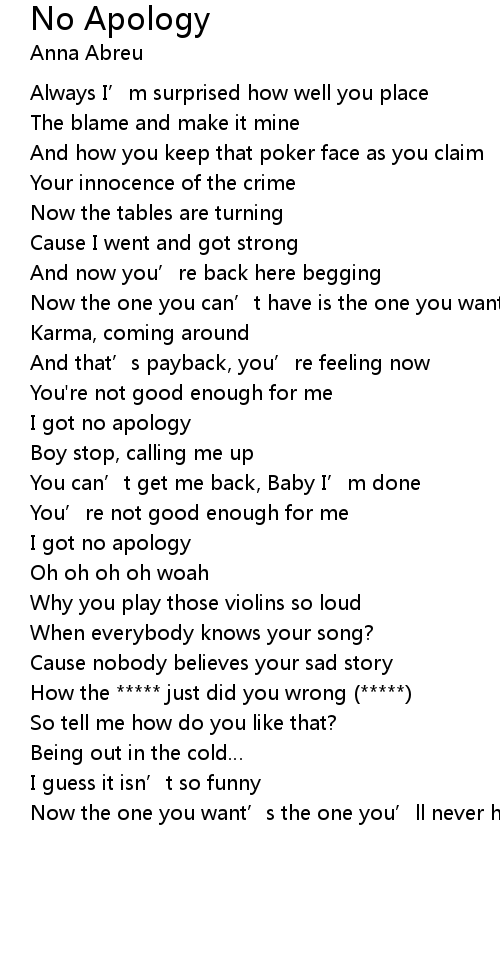 | 歌曲 | No Apology |