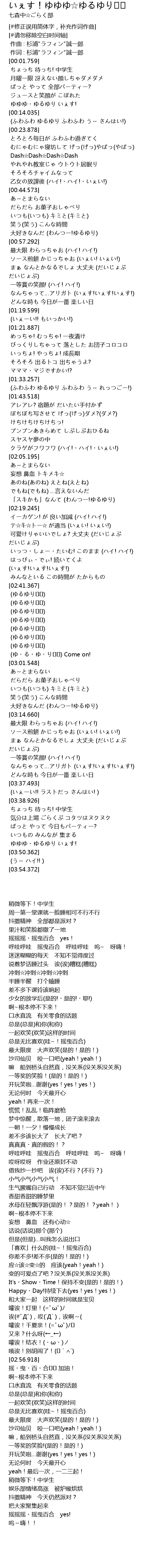 | [03:48.314] | 摇摇摇・摇曳百合 yes! |