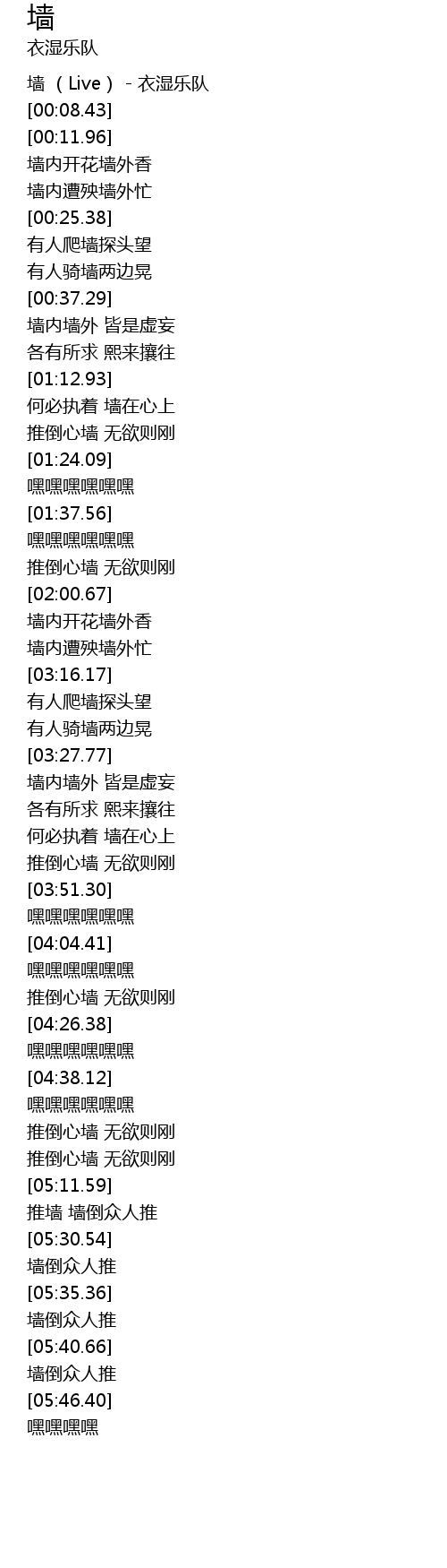 | [00:01.08] | 墙 (Live) - 衣湿乐队 |