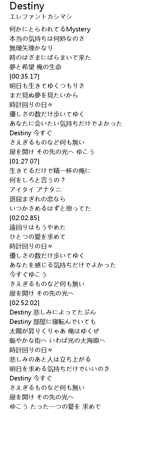 | [02:53.07] | Destiny 悲しみによってたぶん |