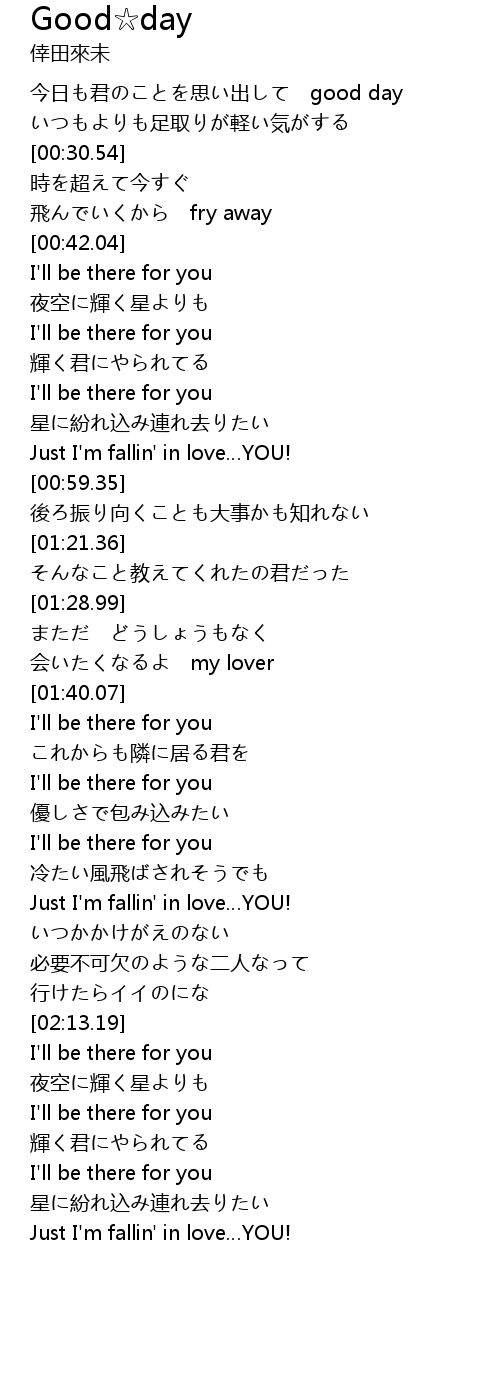 | [00:17.17] | 今日も君のことを思い出して good day |
