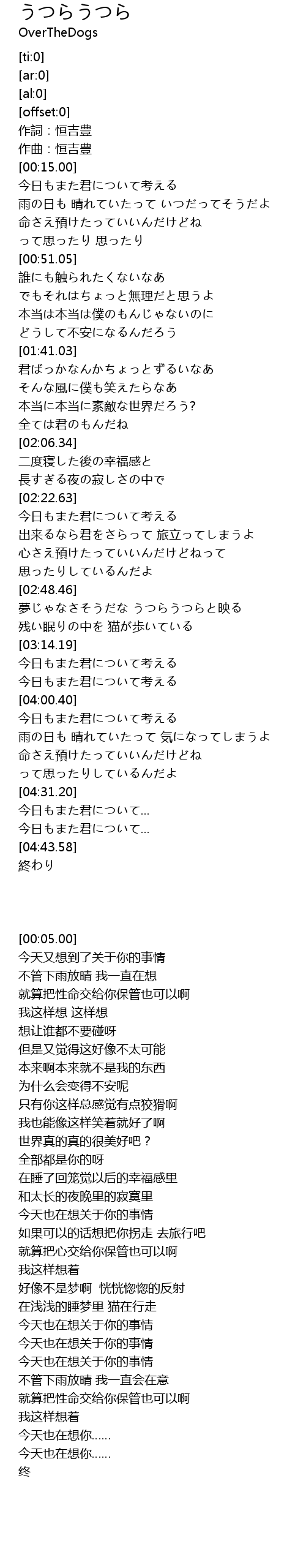 | [02:50.12] | 夢じゃなさそうだな うつらうつらと映る |