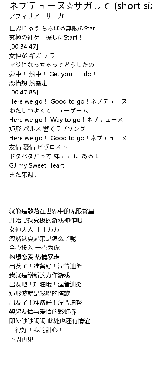 | 歌曲 | ネプテューヌ☆サガして (short size) |