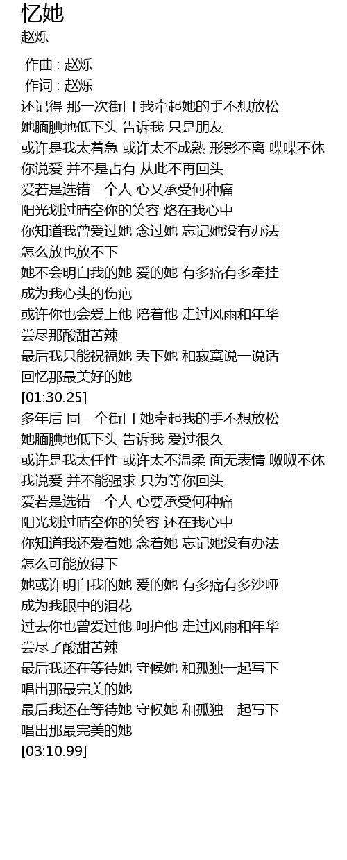 | [00:01.00] | 作词 : 赵烁 |
