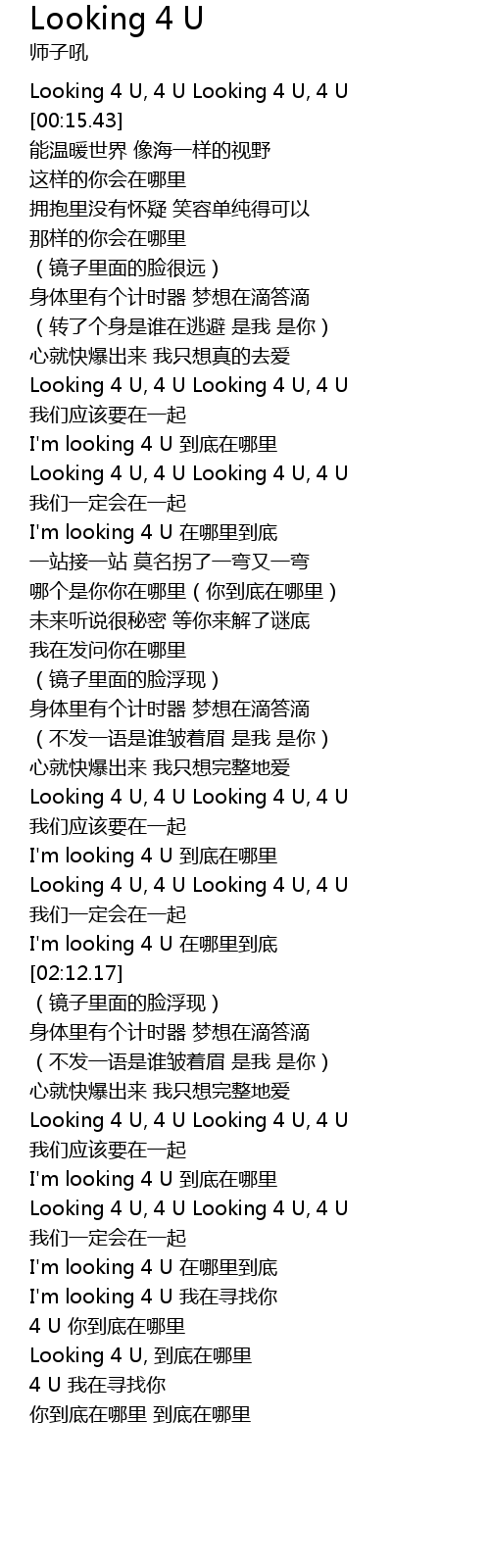 | [03:32.51] | Looking 4 U, 到底在哪里 |