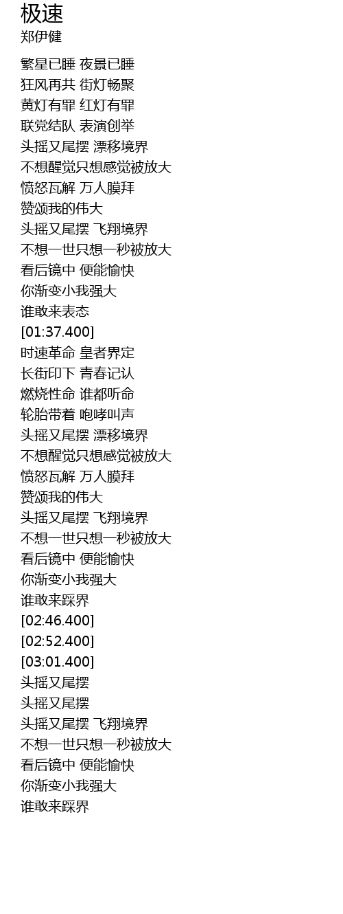 | [02:17.400] | 头摇又尾摆 漂移境界 |
