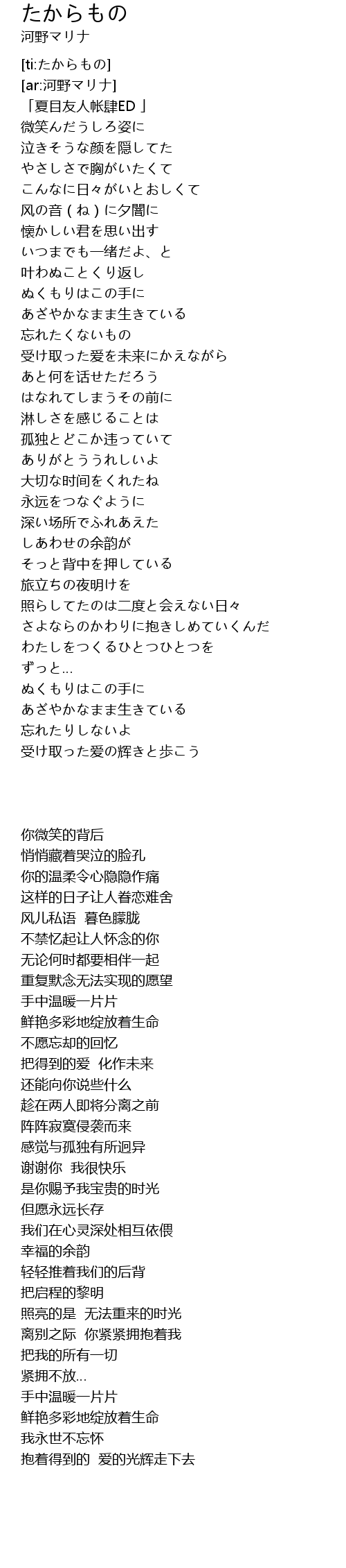 | [00:00.362] | 「夏目友人帐肆ED 」 |
