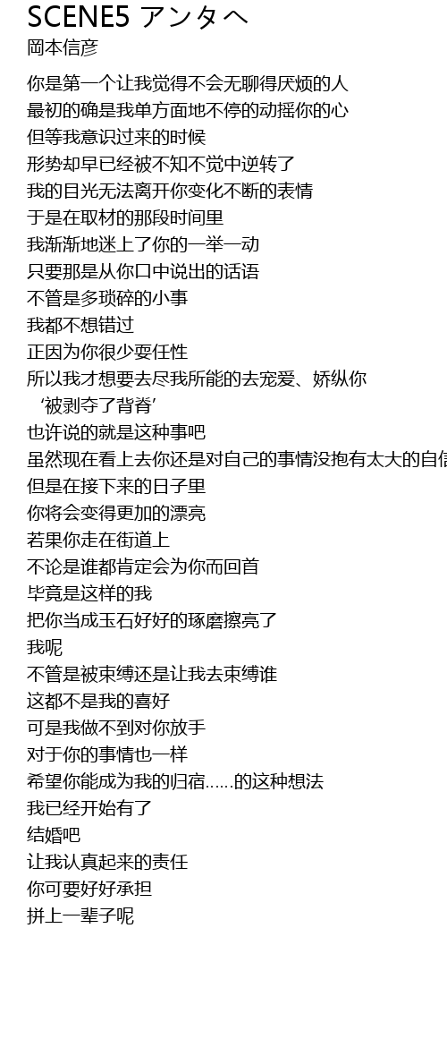 | 歌曲 | SCENE5 アンタへ |