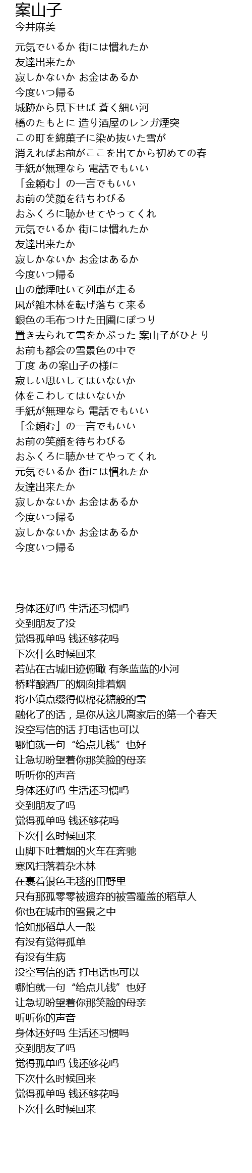 | [03:39.530] | 身体还好吗 生活还习惯吗 |
