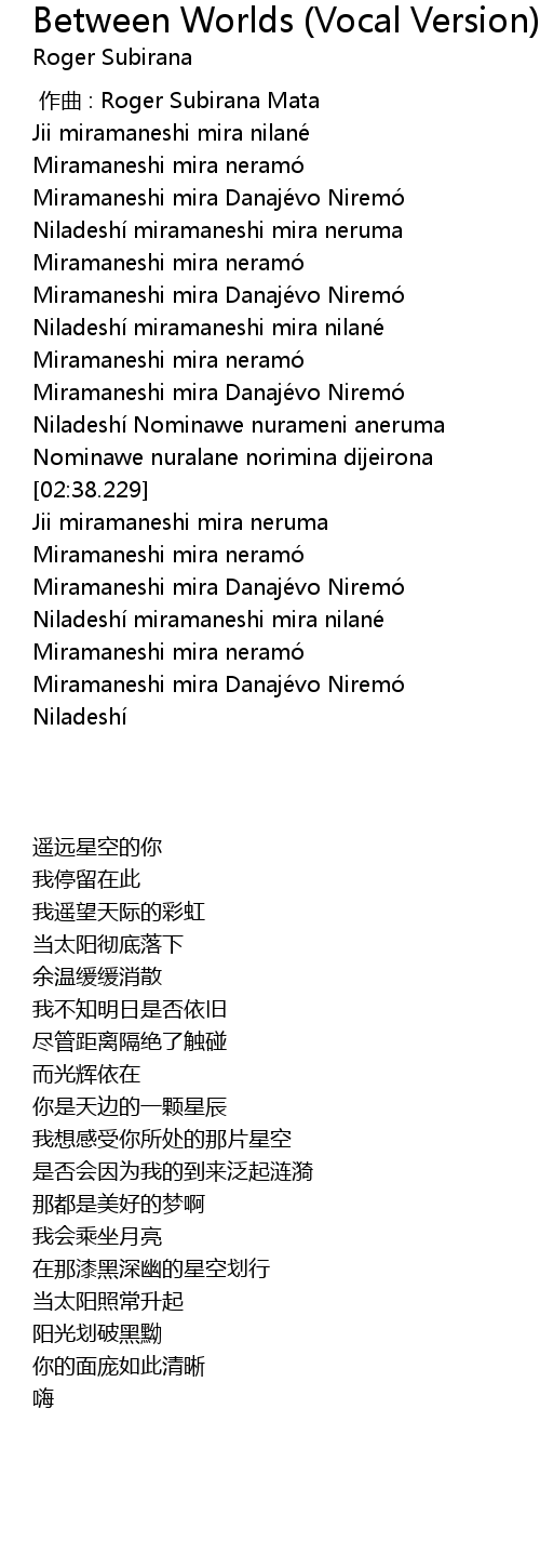 | [00:00.000] | 作曲 : Roger Subirana Mata |