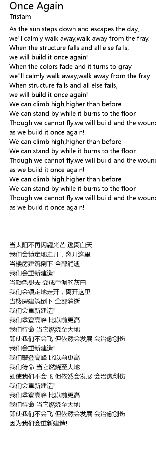 Though we cannot fly,we will build and the wounds will mend |