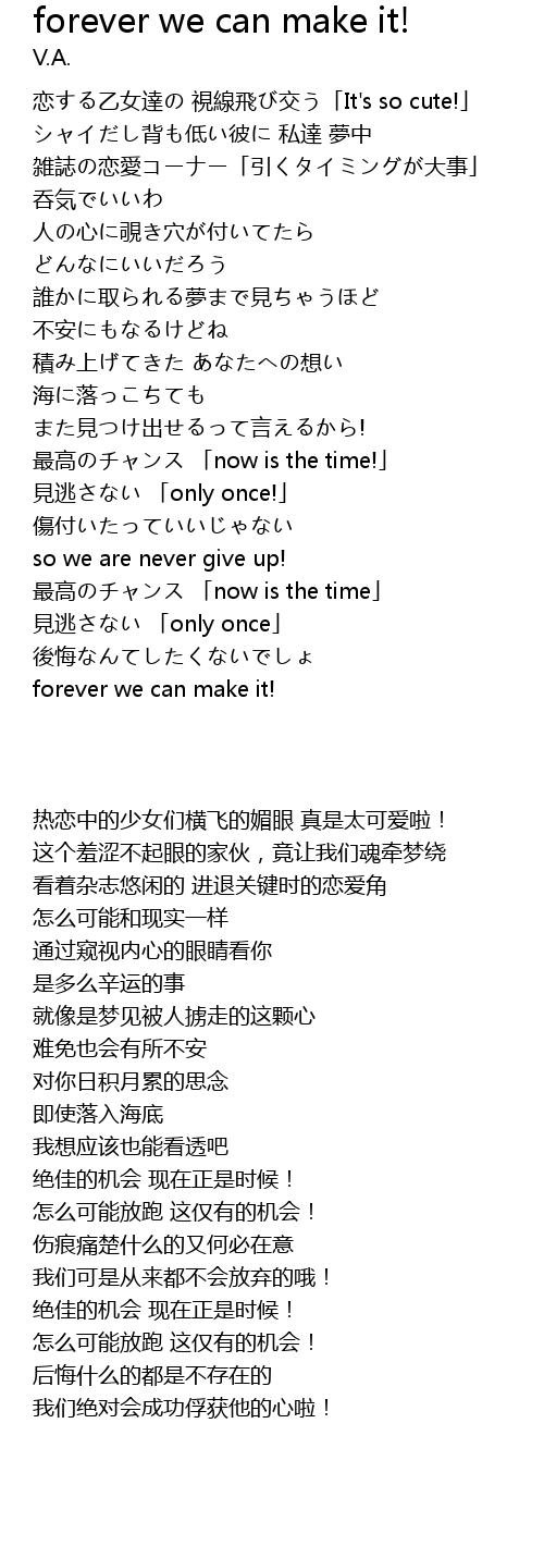 | 歌曲 | forever we can make it! |