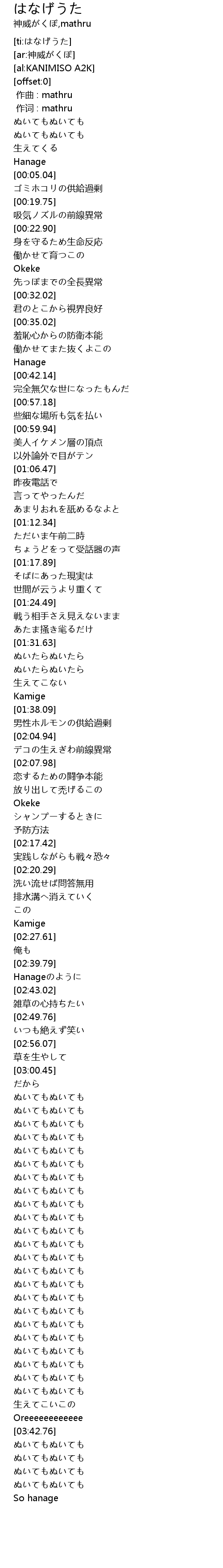 | [ti:はなげうた] | |