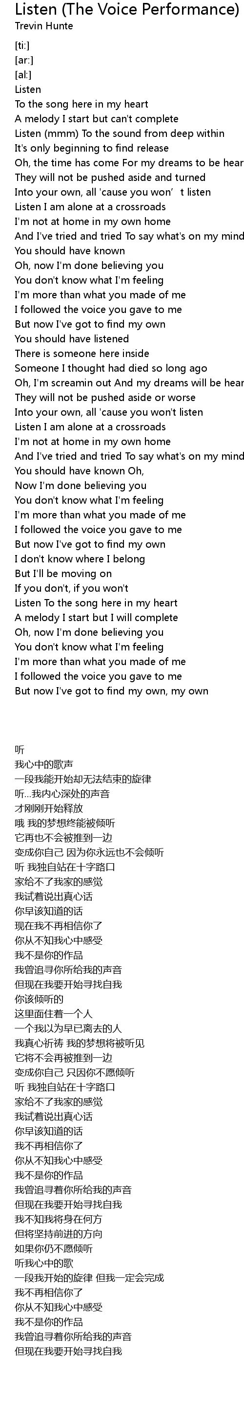 | 歌曲 | Listen (The Voice Performance) |