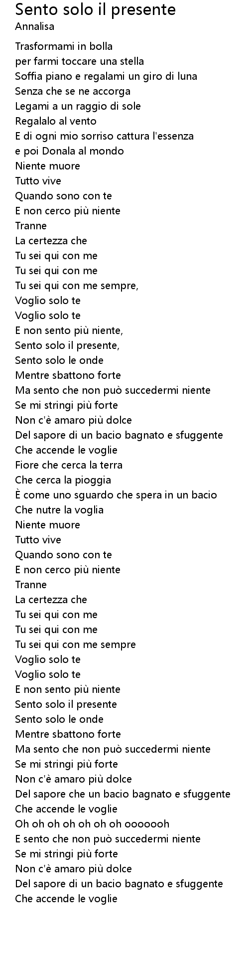 | 歌曲 | Sento solo il presente |