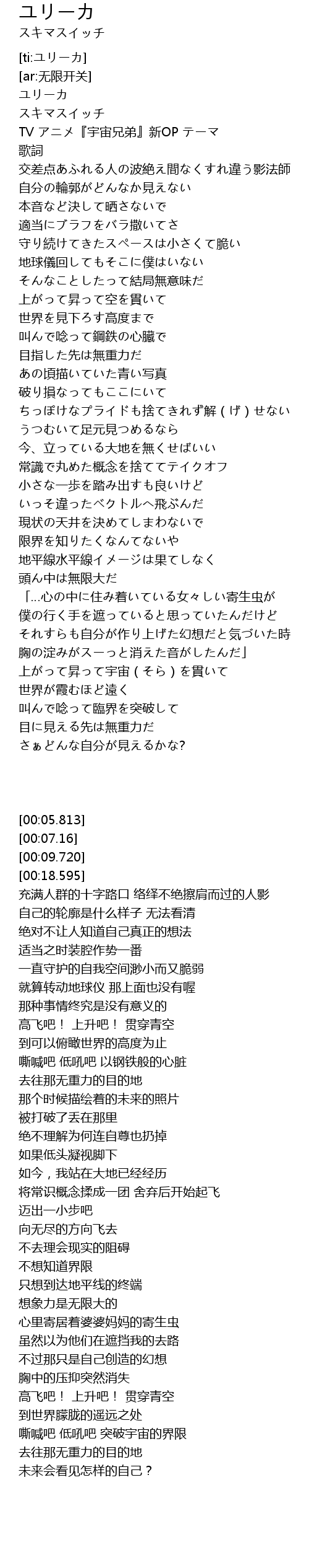 | [00:09.720] | TV アニメ『宇宙兄弟』新OP テーマ |