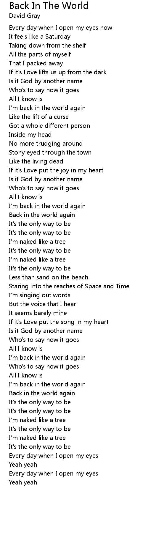 Back In The World 歌词