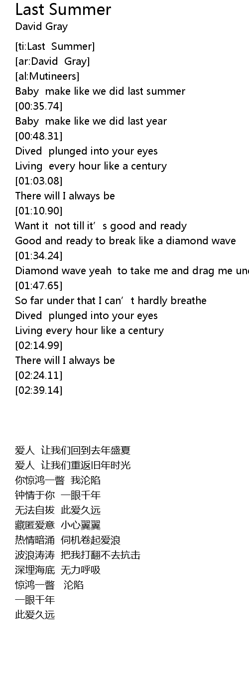| [00:26.62] | 爱人 让我们回到去年盛夏 |