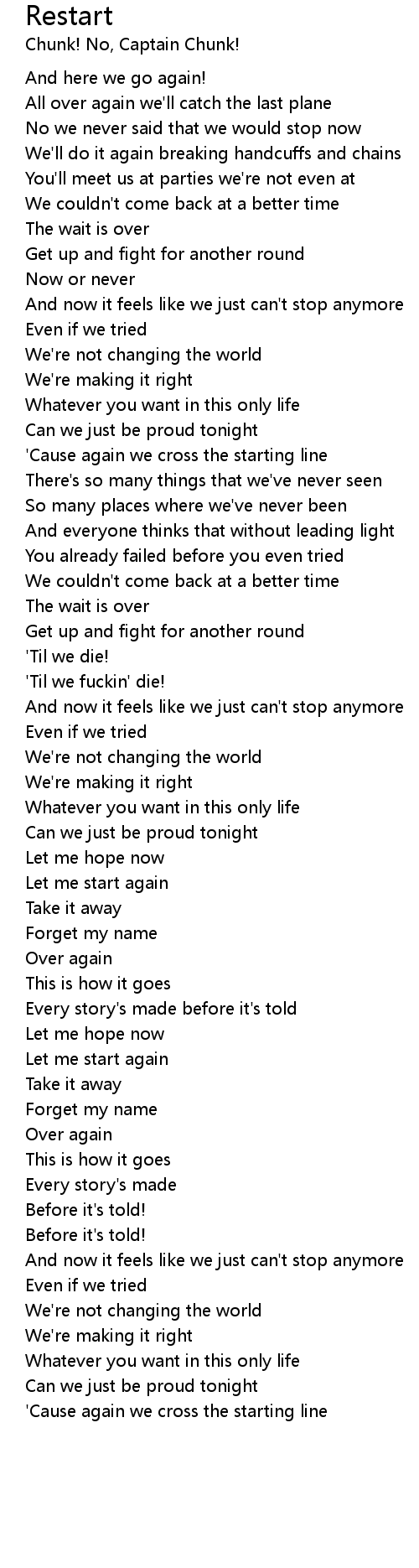 'Cause again we cross the starting line |