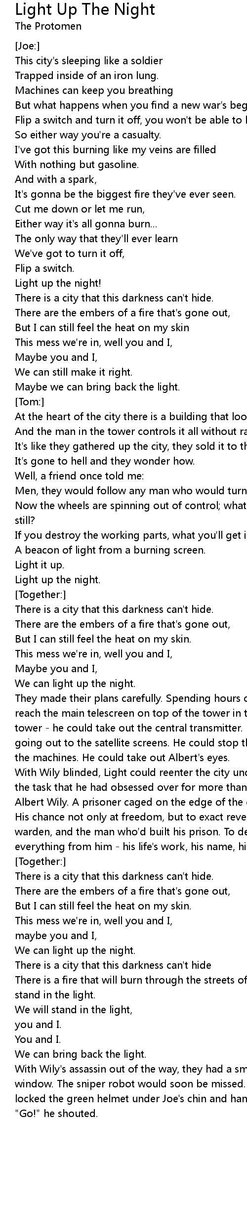 There is a fire that will burn through the streets of the city, and we will stand in the light. |