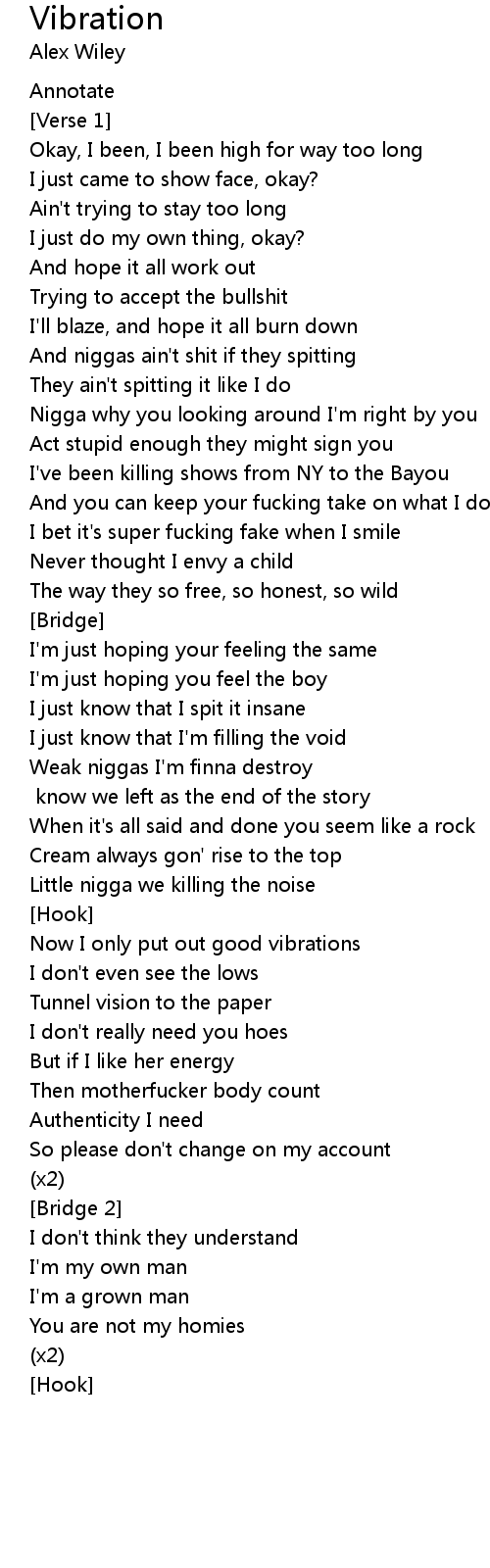 Now I only put out good vibrations |
