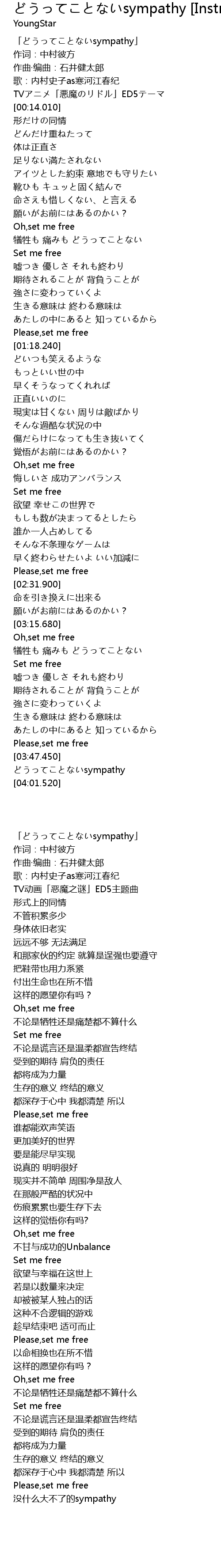 | [00:02.260] | 「どうってことないsympathy」 |