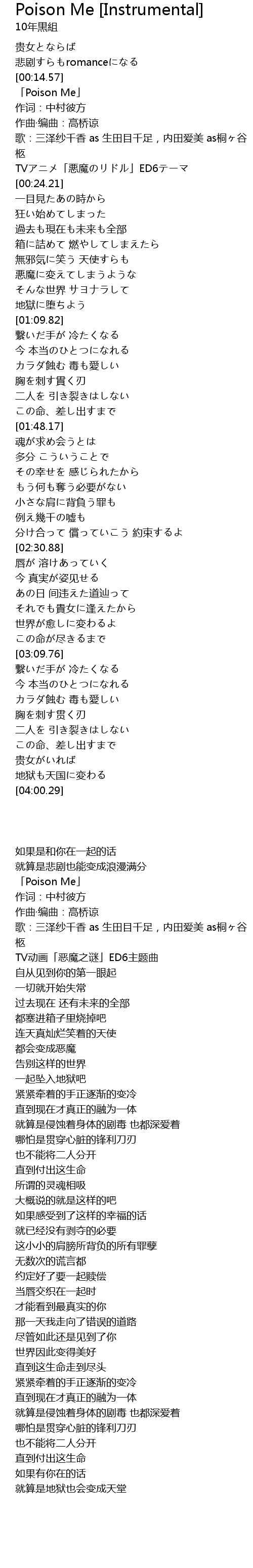 | [00:22.28] | TVアニメ「悪魔のリドル」ED6テーマ |
