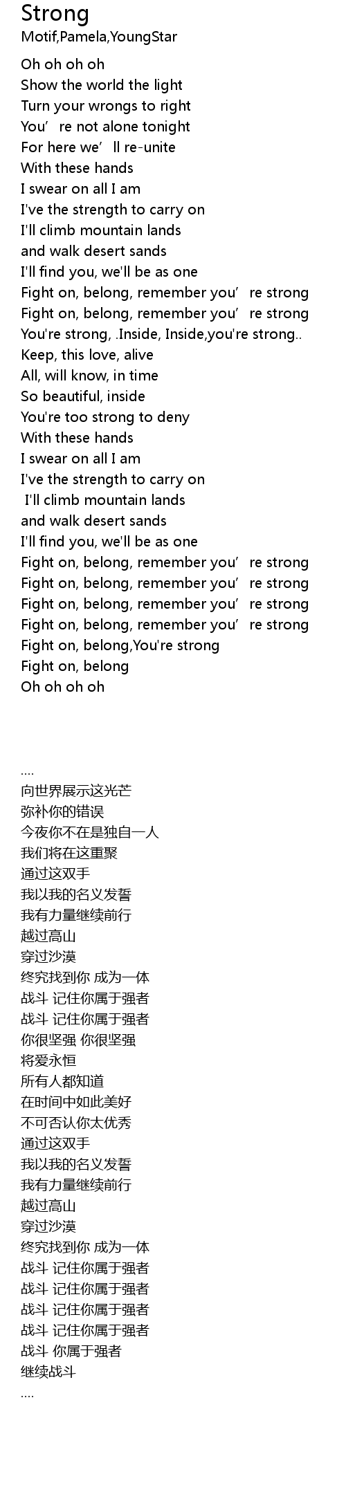 | [04:03.65] | Fight on, belong, remember you' re strong |