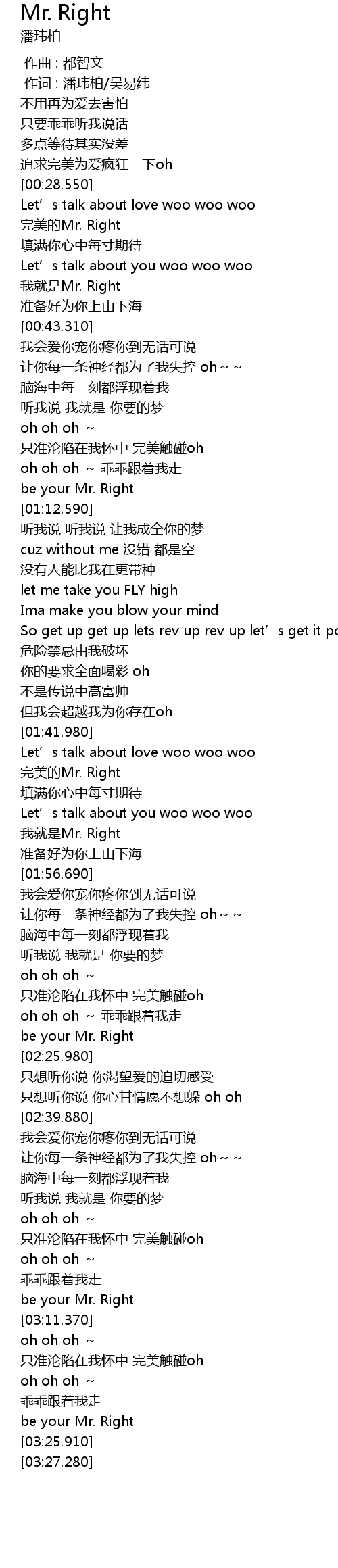 | [03:23.600] | be your Mr. Right |