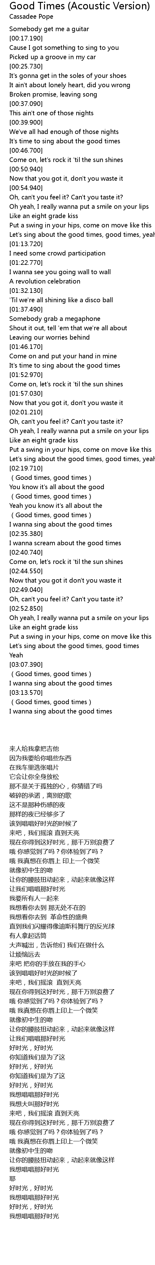| [02:15.620] | Let's sing about the good times, good times, yeah |