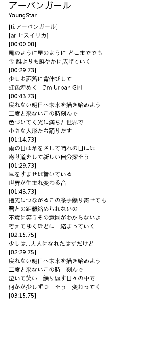 | [00:36.75] | 虹色煌めく I'm Urban Girl |