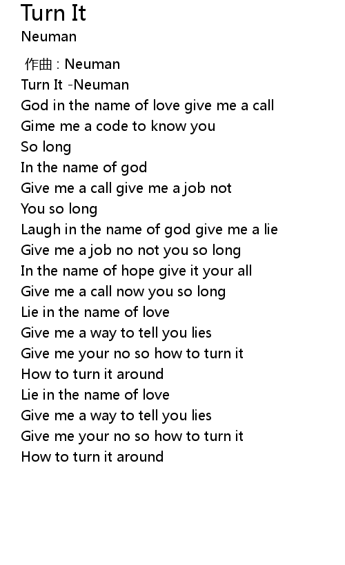 | [00:00.340] | Turn It Neuman |