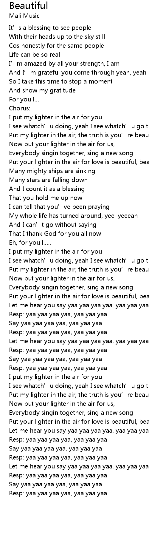 | Put my lighter in the air, the truth is you' re beautiful, beautiful | |