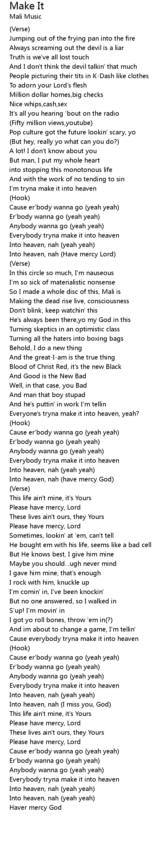 Into heaven, nah (have mercy God) |