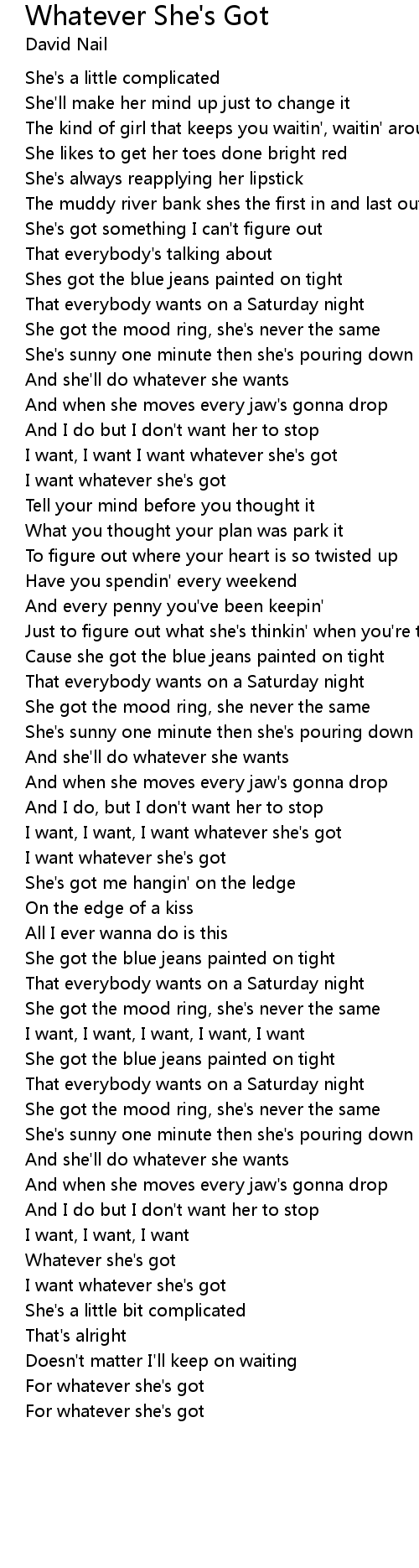 I want, I want, I want whatever she's got |