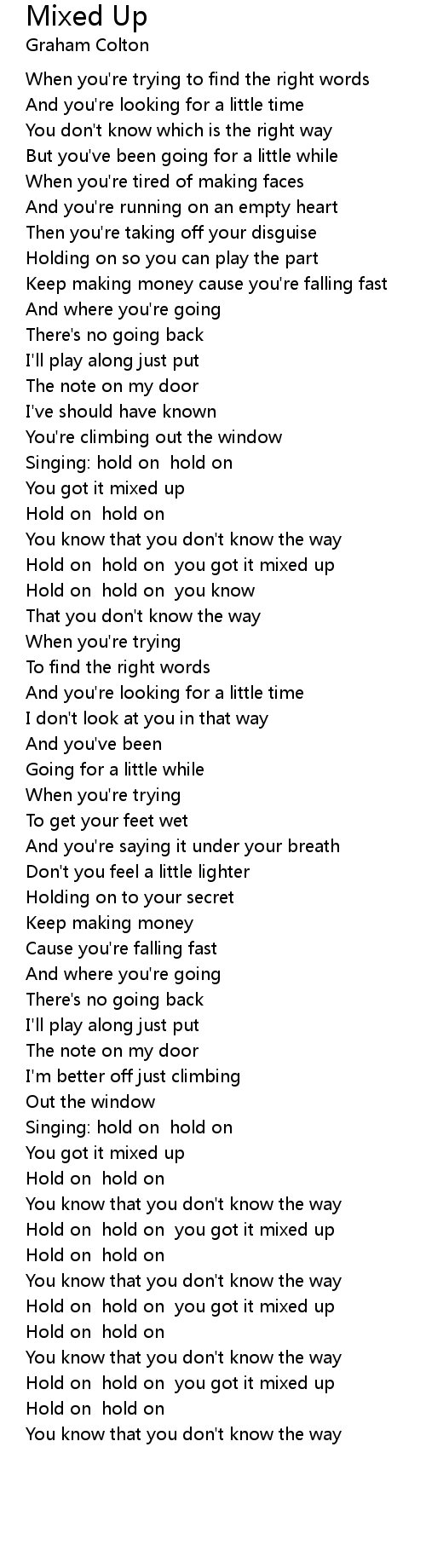 Singing: hold on hold on |