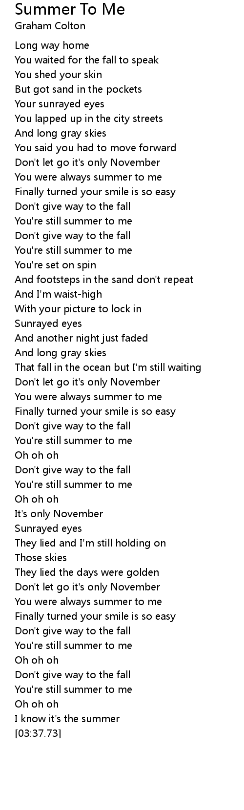 You're still summer to me |