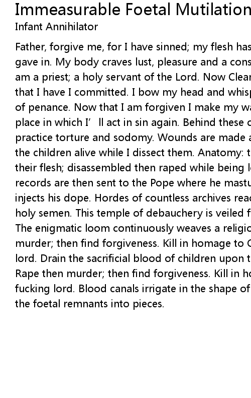 | 歌曲 | Immeasurable Foetal Mutilation |