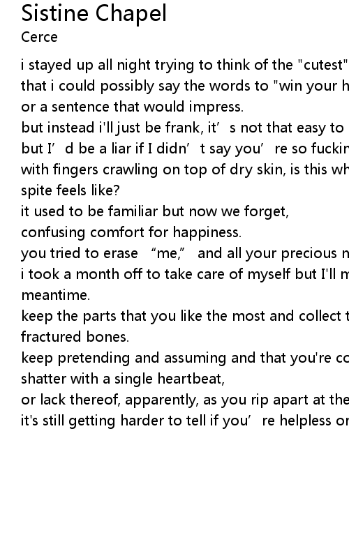 | keep pretending and assuming and that you're concrete and ignore that you'll shatter with a single heartbeat, | |