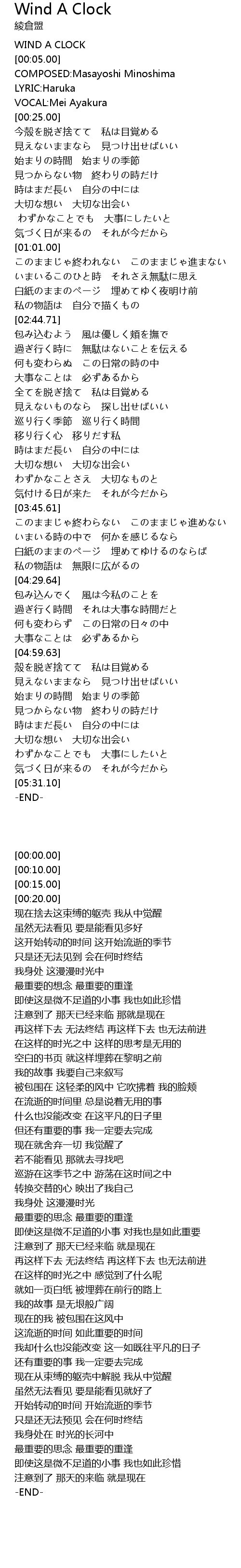 | [00:00.00] | WIND A CLOCK |