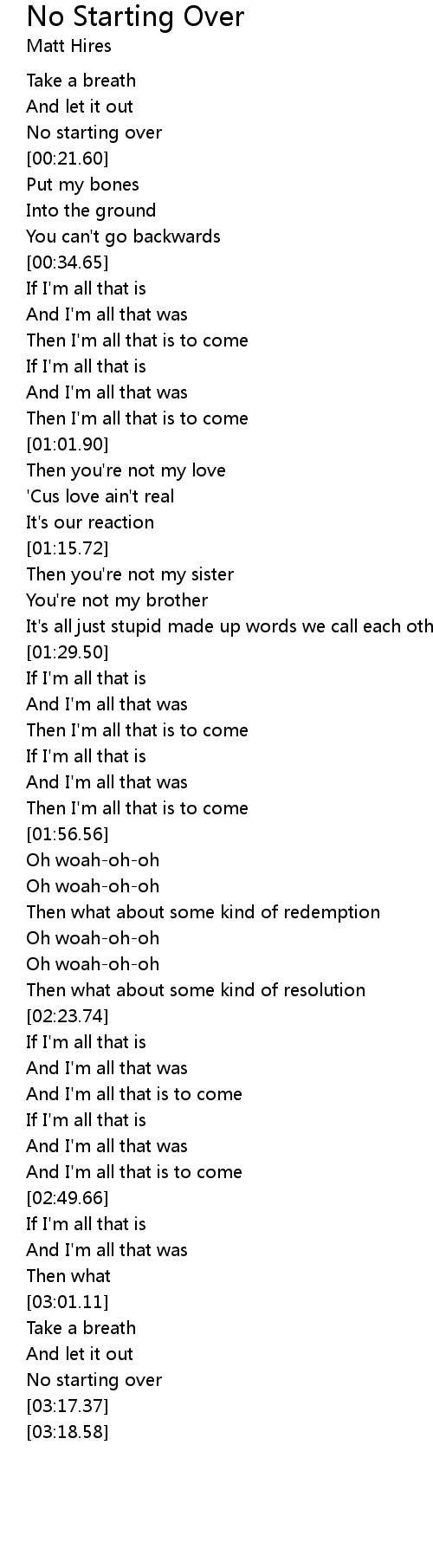 No starting over |